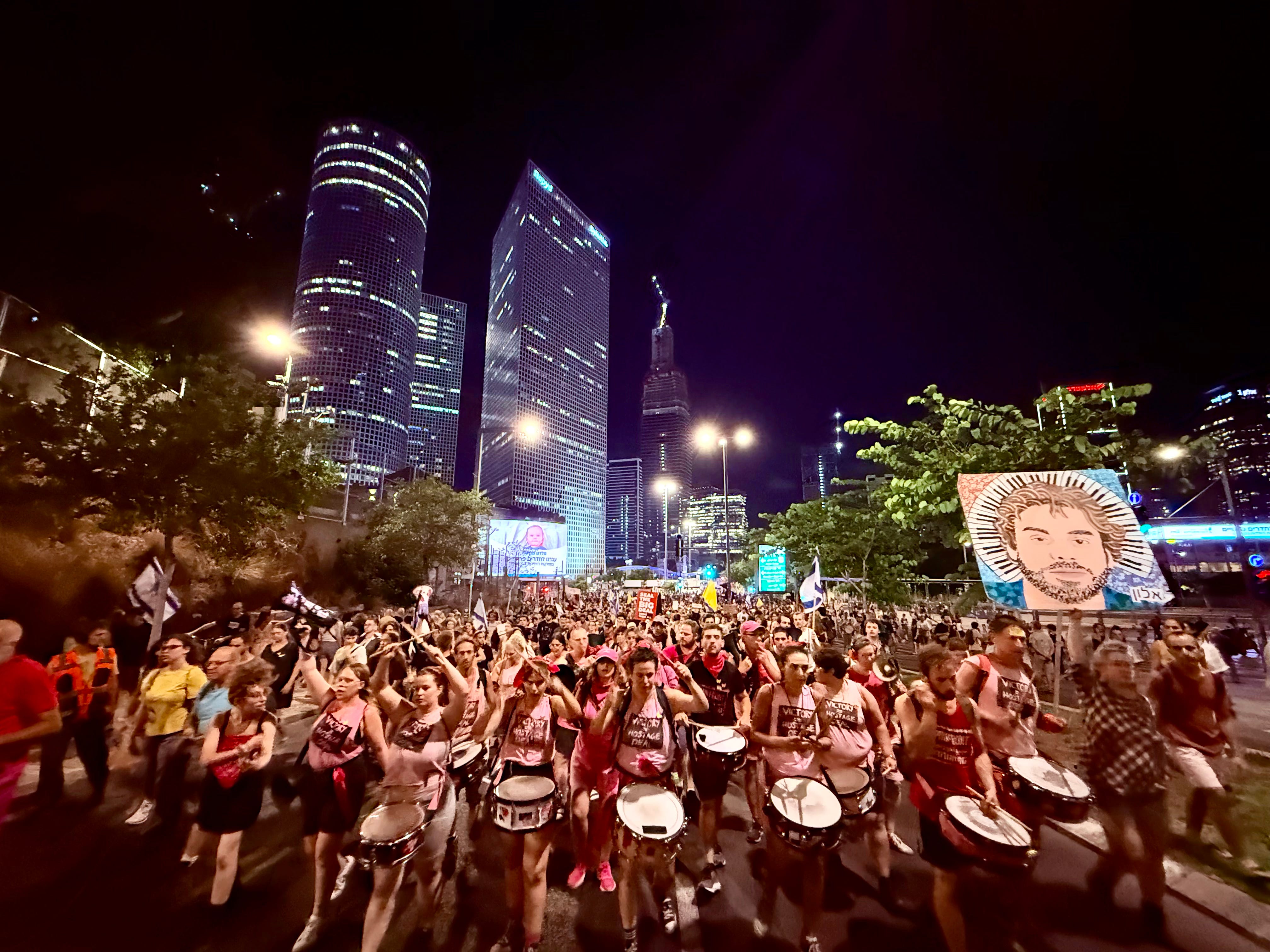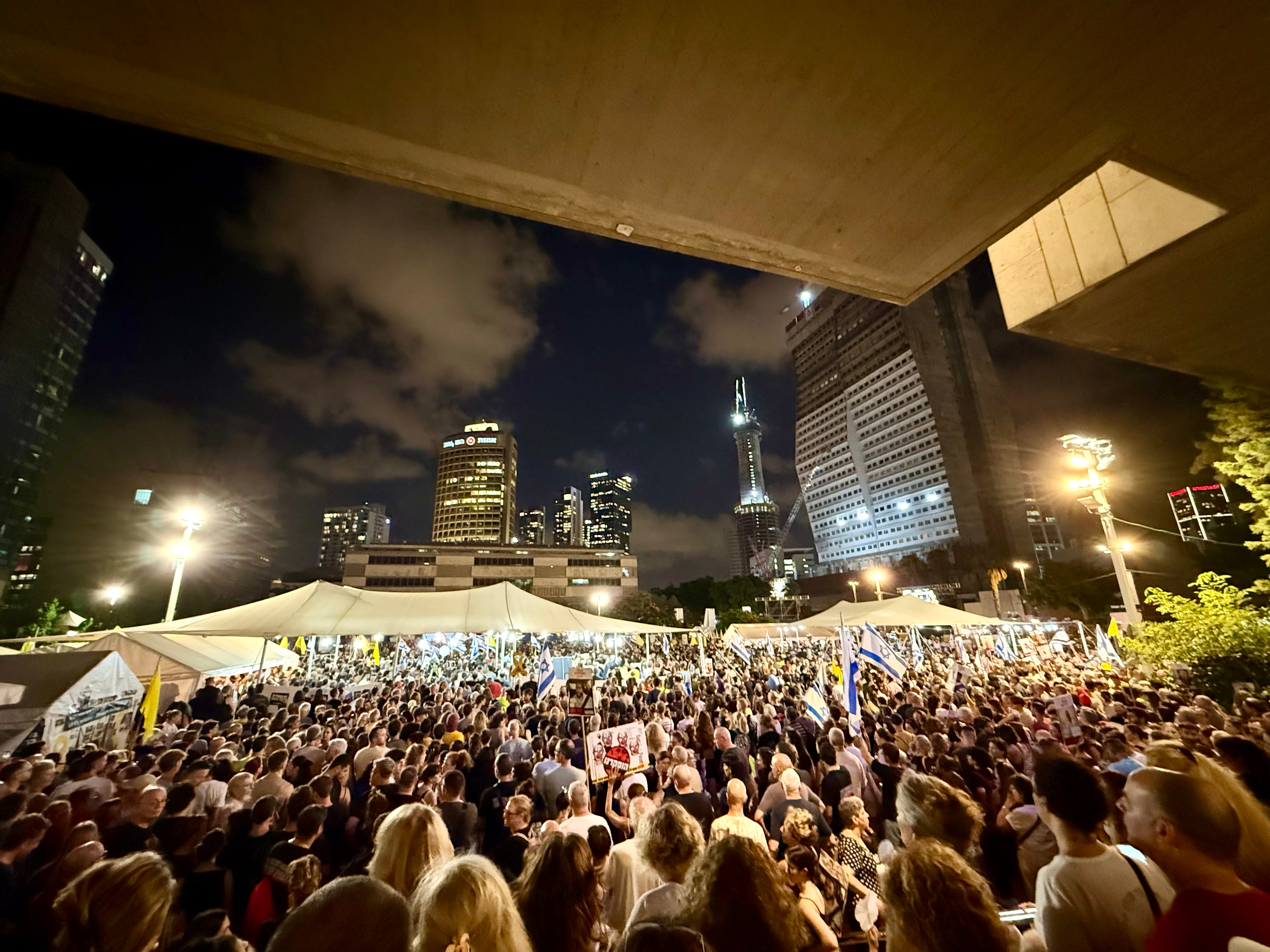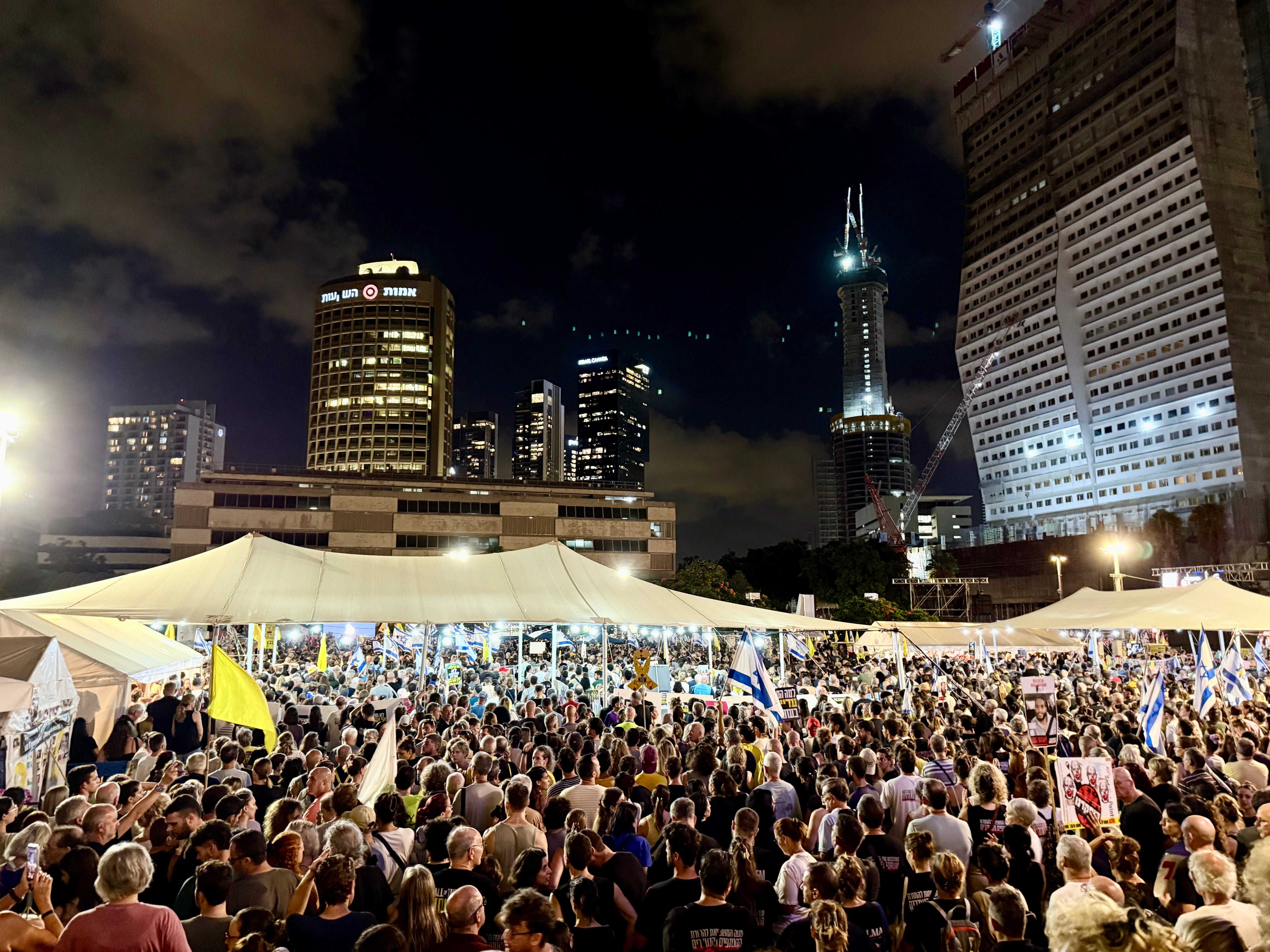 According to protest organizations, roughly 400,000 people joined the demonstration in Tel Aviv. It certainly felt that way. The streets around what has come to be known as “Hostages’ Square” were thronged with people. The square itself was overflowing, the crowd packed in so tight together that it was hard to breathe; the noise from the chanting and drumming echoed for blocks beyond it, down the city’s central boulevards. It was, by most accounts, the largest demonstration since October 7.